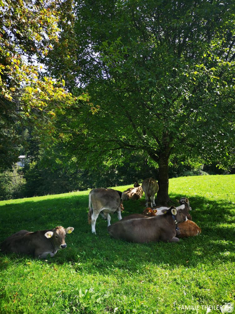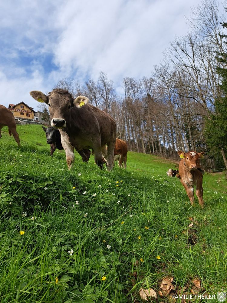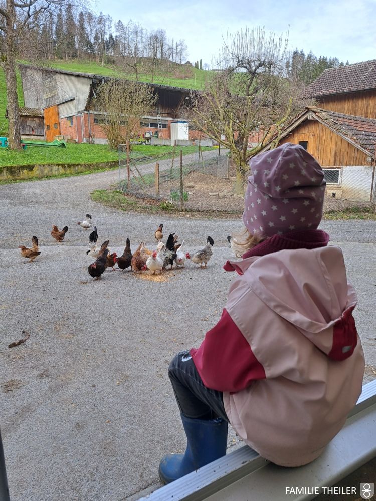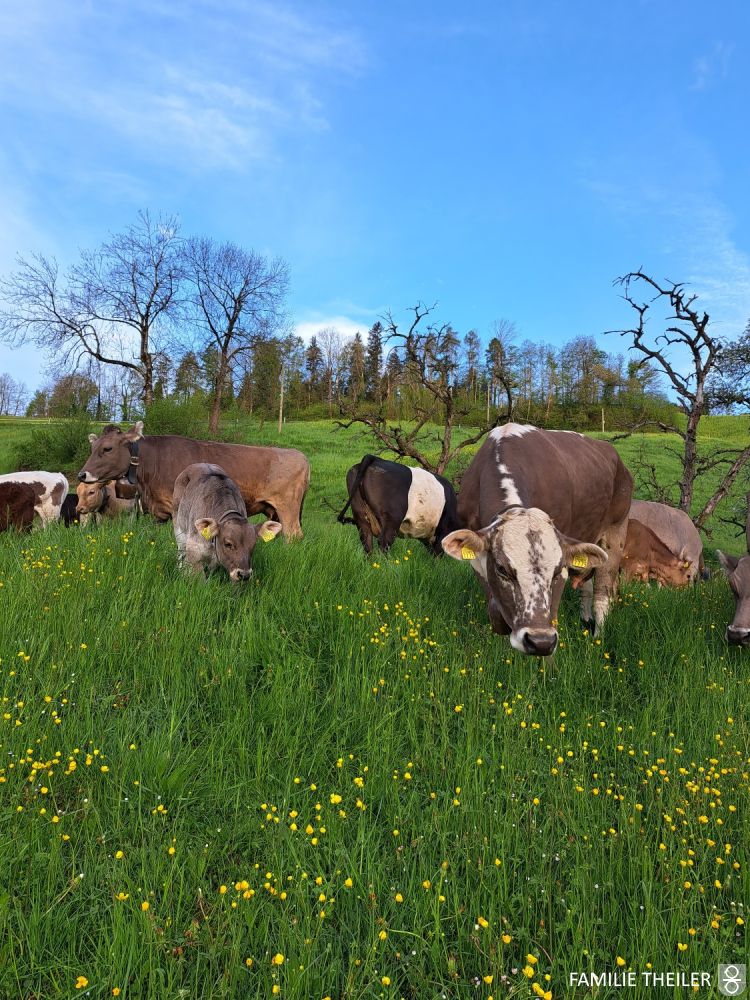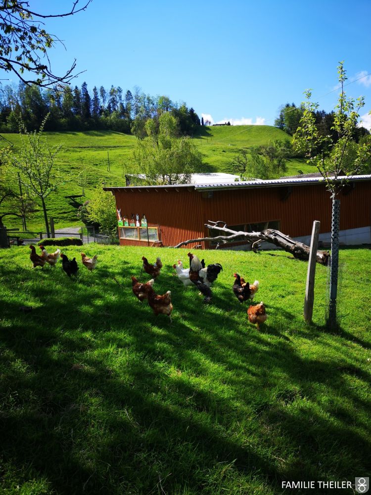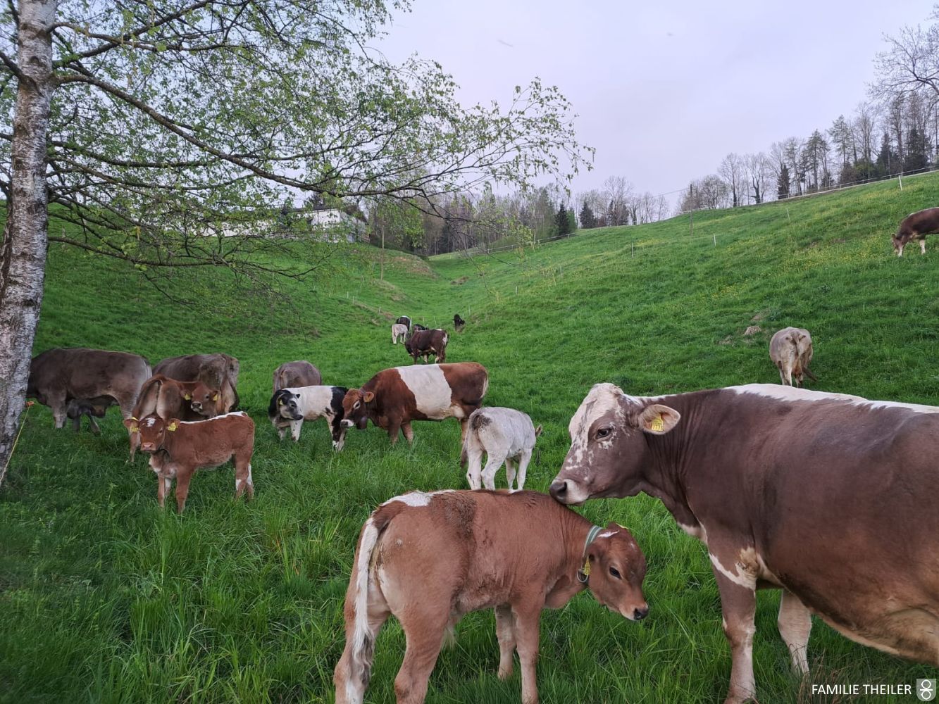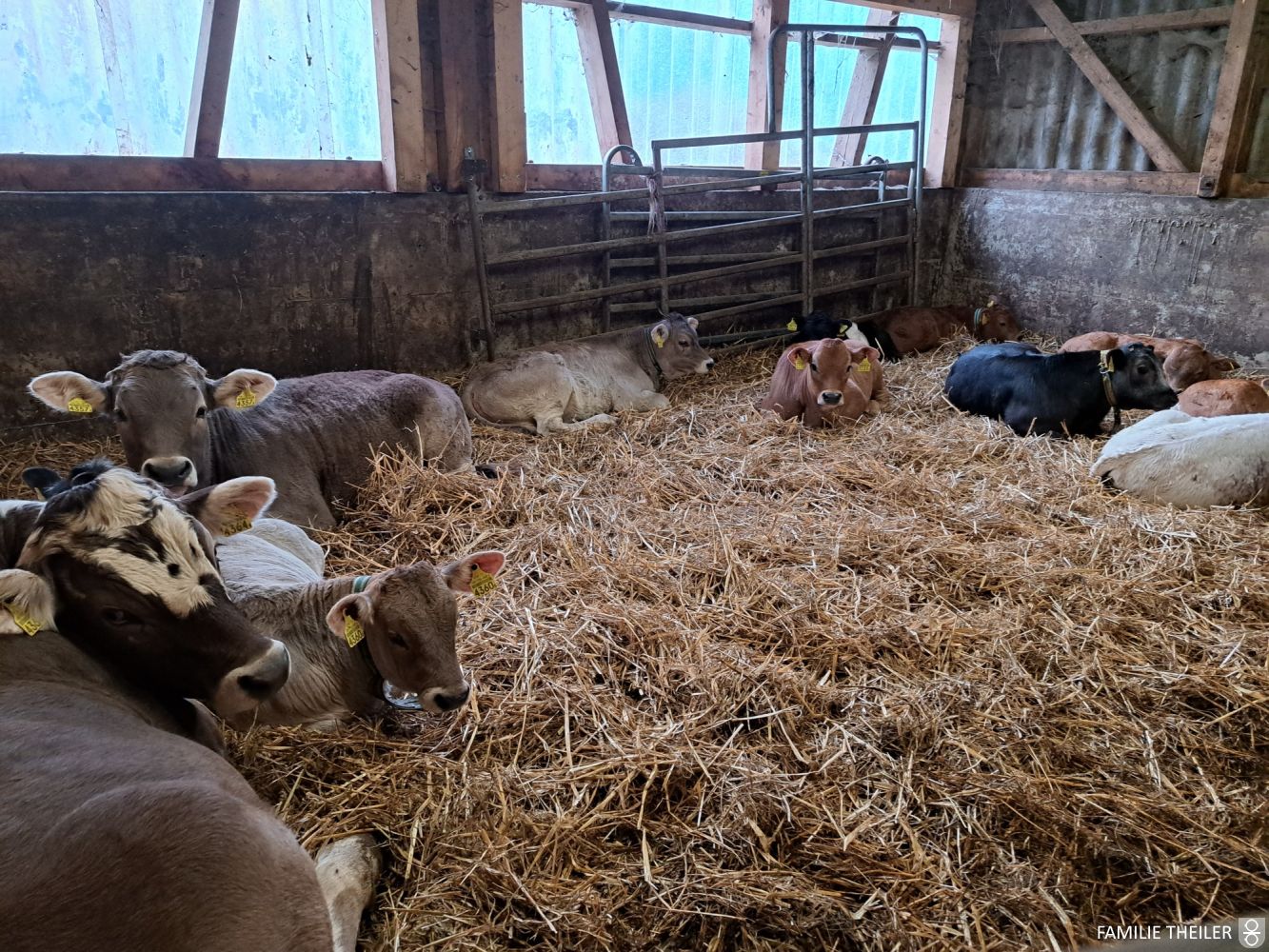 Auf unserem Hof leben die verschiedensten Tiere. Eine Herde von ca. 40 Tieren geniesst die Mutterkuhhaltung. Fünf Schweine und 40-50 Hühner leben in Freilaufhaltung. Die Eier werden nebst unseres privaten Gebrauchs auch an unsere Kundschaft verkauft. Stets auf Entdeckungsreise spazieren die Zwerghühner gemütlich auf dem Hof herum. Die Kaschmirziege samt den drei Minischafen schauen gelassen zu. Täglich Freude haben wir an unseren kleinsten Tieren, den Wachteln und Hasen.